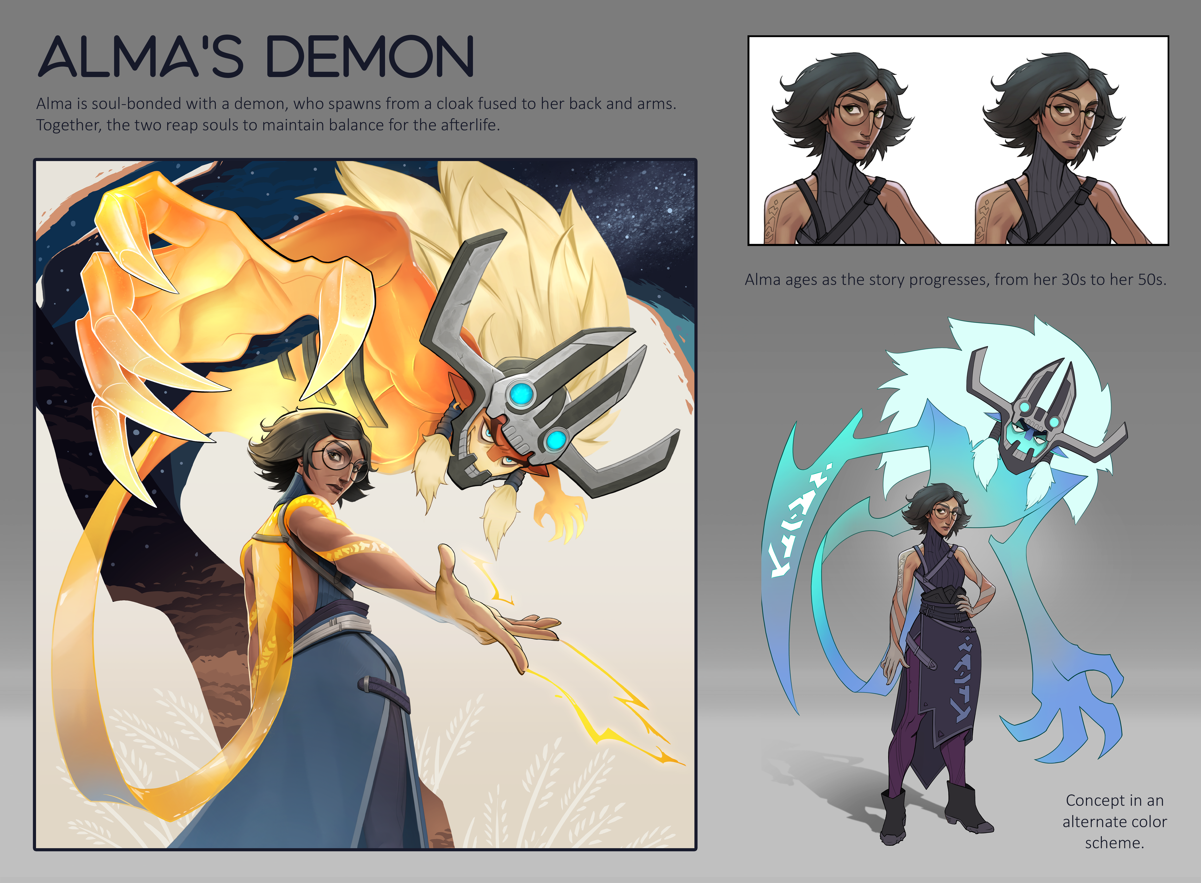 The game concept involves a soul reaper who is fused with a demon, and the two fight in tandem to send souls back to the afterlife.